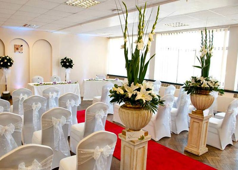 What type of decorations are allowed at UK wedding venues?